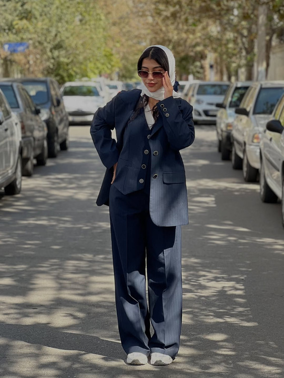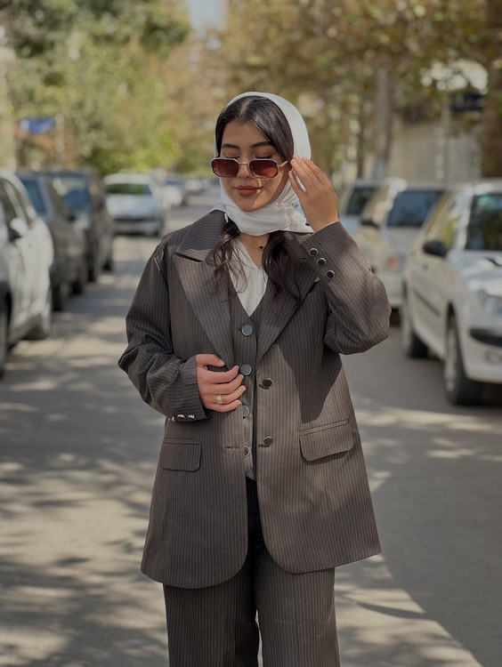 این کت شلوار رو من فقط به خانومایِ شیک پوش میکنم خانم های مستقل و قوی که وقار و ابهت رو میخوان نشون بدن. ست کامل شامل کت و شلوار و جلیغه.